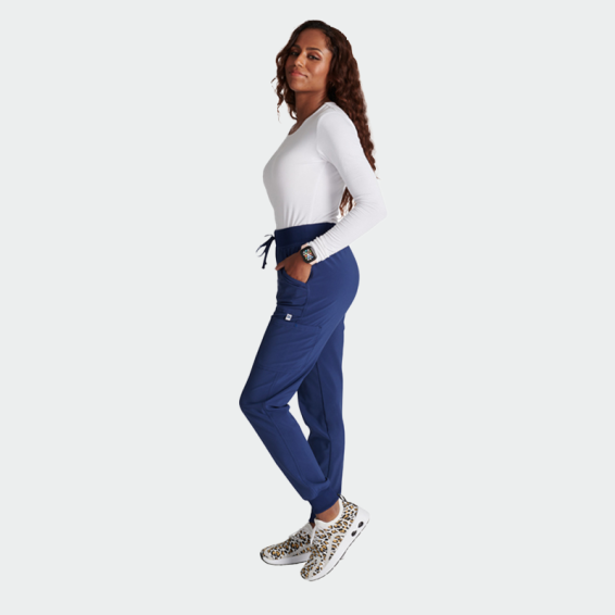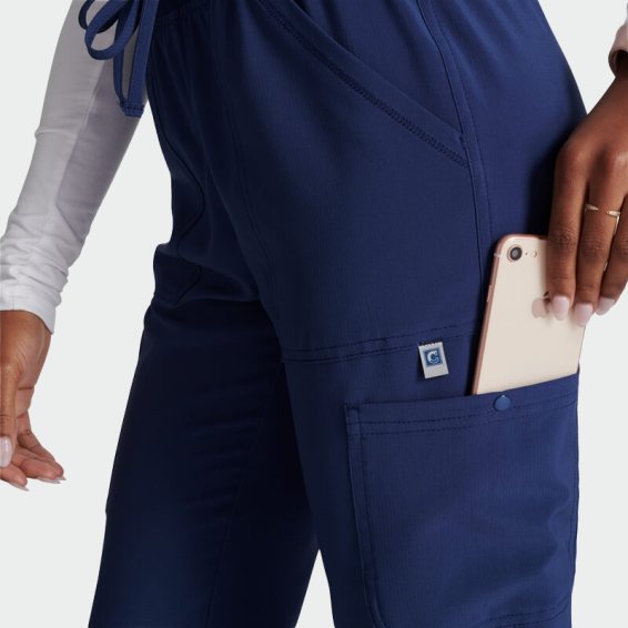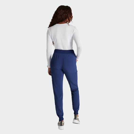 Елегантният дамски медицински панталон Cherokee Infinity CK249A е с модерна кройка тип джогър и стеснен крачол. Разполага със средно висока талия, удобен ластичен колан и четири практични джоба – два предни и два странични. Ластичните маншети осигуряват комфорт и свобода на движение.