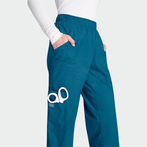 Медицински панталон Cherokee CORE STRETCH WWE4005 е унисекс модел с модерен прав силует и високо ниво на комфорт. Изработен е от 55% памук, 42% полиестер и 3% еластан (170 г/м²) – дишаща и еластична материя, осигуряваща свобода на движение през целия ден. Панталонът разполага с ластичен колан, връзки за пристягане, множество практични джобове и гайка за карта. Подходящ за лекари, медицински сестри, зъболекари, фармацевти, ветеринари и студенти. Изберете комфорт и качество с медицинско облекло Cherokee CORE STRETCH.