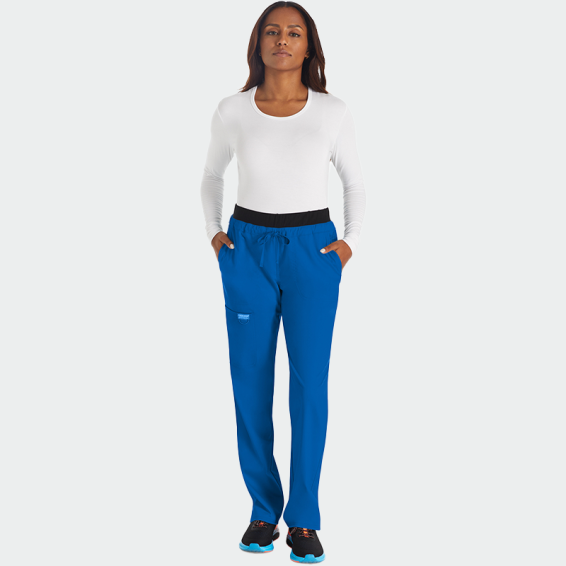 Елегантният дамски медицински панталон CHEROKEE REVOLUTION WWE105 предлага модерна визия и изключителен комфорт. Със средно висока талия, ластичен колан и прав силует, моделът осигурява свобода на движение през целия ден. Разполага с два предни, два задни и един карго джоб с халка за бадж, както и цепки в долната част на крачолите. Изработен е от висококачествена дишаща материя – 78% полиестер, 20% вискоза и 2% еластан (170 г/м²). Подходящ за лекари, медицински сестри, зъболекари, фармацевти и студенти по медицина.