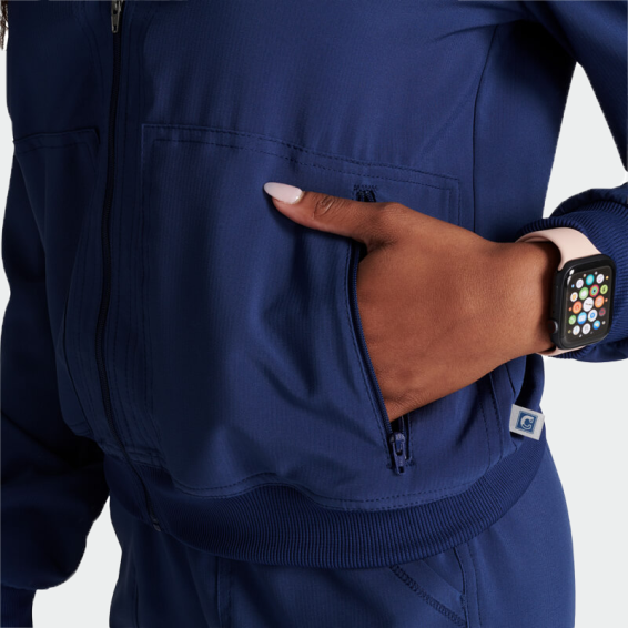 Медицинско яке Cherokee CK349A е стилно дамско яке с модерен дизайн и висока функционалност. Изработено е от лека и еластична материя – 90% полиестер и 10% еластан (175 г/м²), осигуряваща комфорт и свобода при движение. Якето разполага с цип отпред, два предни джоба с цип, ластични маншети на ръкавите и кръста. Подходящо за лекари, медицински сестри, зъболекари, фармацевти и студенти. Перфектно за носене върху медицинска униформа в по-хладно време.