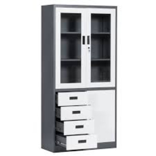 Метален шкаф Carmen CR-1278 E SAND е красив модел, който ще се впише много добре във вашия офис. Той е с практично разпределение като визуално може да го разделим на две части. Горната разполага с един голям шкаф със стъклени врати и два рафта, които се регулират на височина, а долната - с един по-малък шкаф с един рафт и четири чекмеджета. Изработен е така, че да събере голям обем от документи. Всяка врата е със заключващ се механизъм. Предлага се с в различни цветове в размери 90х40х185 см.