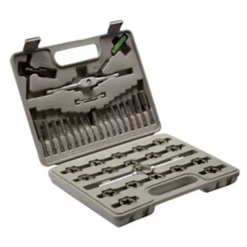 Комплект метчици, плашки и въртоци в пластмасова кутия