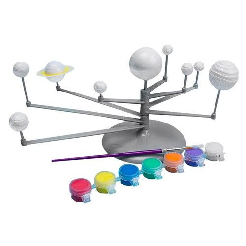 Iso Trade предлага модел на Слънчевата система за деца над 8 години, съчетаващ забавление, обучение и креативност. Комплектът включва планети, стойка, бои, четка и инструкции за сглобяване. Децата могат да боядисат планетите в 7 цвята, включително бял, който свети в тъмното. Играта развива фината моторика, концентрацията, въображението и знанията за Слънчевата система. Изработен от безопасни материали с CE и EN 71 сертификати. Компактни размери: 16 × 10 × 9 см, тегло 0,19 кг. Перфектен подарък за млади космически изследователи и творчески занимания у дома.
