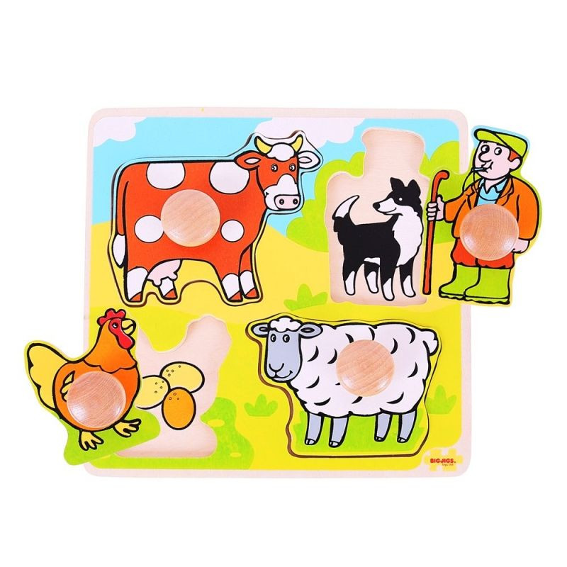 Моят първи дървен пъзел с дръжки Ферма Bigjigs