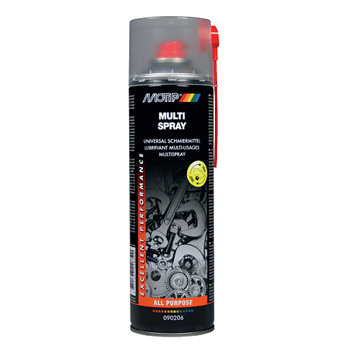 Мултиспрей - универсална смазка Motip Dupli 12 бр х 500 мл се предлага в разфасофка по 1 брой и цената е за 1 брой, е универсално масло за смазване, защита и почистване на части от метал и пластмаса. Влагоотблъскващо, с високо проникваща способност и почистващ ефект. Премахва масла, греси, вакси и др, предотвратява появата на ръжда. Формира защитен филм, който остава след почистване. Изключителната му финост и ниската степен на стичане са подходящи за смазване на найлон и поликарбонат. Размразява и предпазва от замръзване. Мултиспрей - универсална смазка Motip Dupli е висококачествено, универсално средство без силикон за смазване и защита на детайлите от метал и пластмаса.