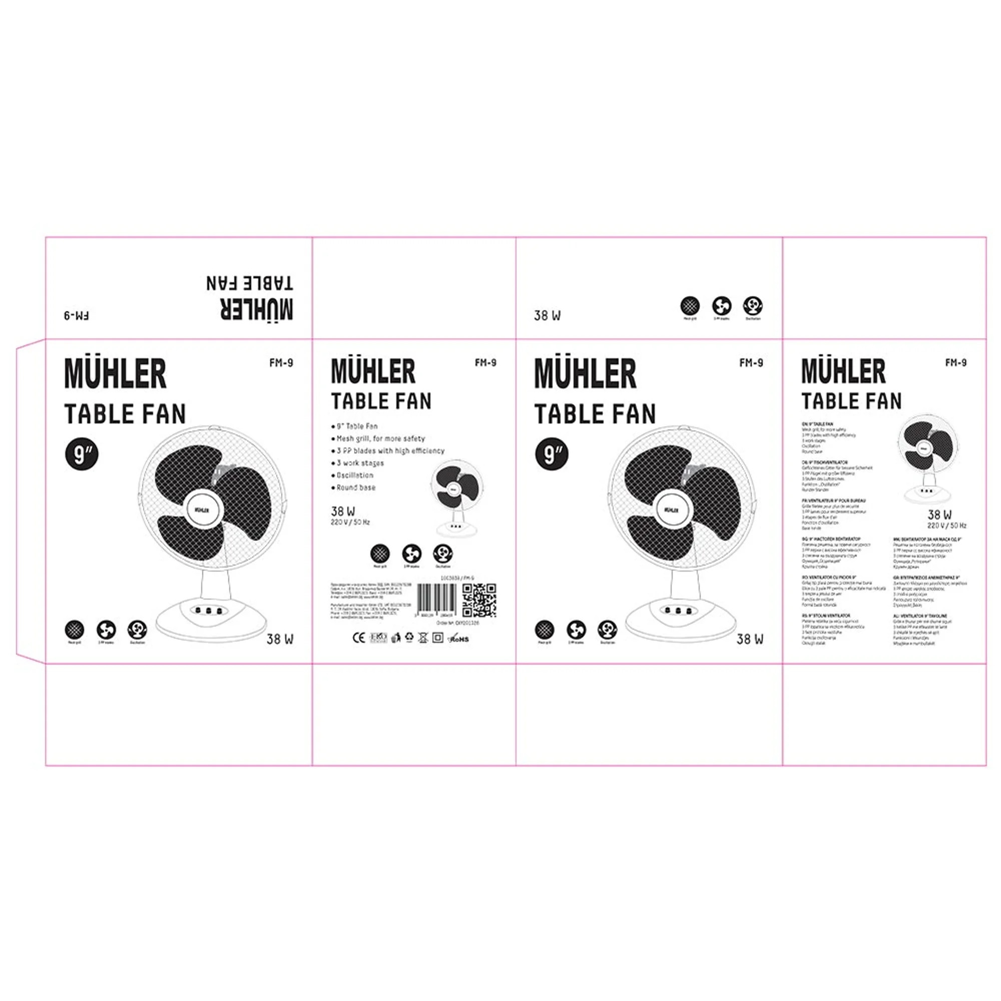 Настолен вентилатор Muhler FM-9 – 9", 20W, 3 перки