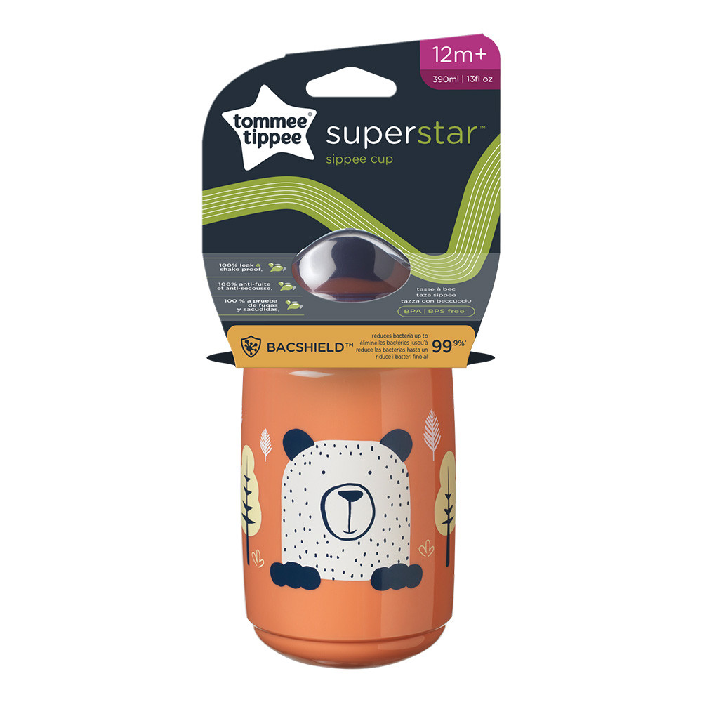Неразливаща се бебешка чаша с твърд накрайник SuperStar Sippee Cup 390 мл е създадена за активни деца над 12 месеца. Ергономичната форма осигурява удобен захват от малките ръчички и подпомага самостоятелното пиене. Иновативната неразливаща се клапа INTELLIVALVE™ предотвратява течове и разливане, дори при движение и игра. Антибактериалното покритие BACSHIELD™ намалява бактериите до 99.9% за по-добра хигиена. Чашата е лесна за почистване и подходяща за съдомиялна машина и стерилизация. Изработена от безопасни материали без BPA, BPS, PVC и фталати, тя е идеален избор за ежедневна употреба у дома и навън.