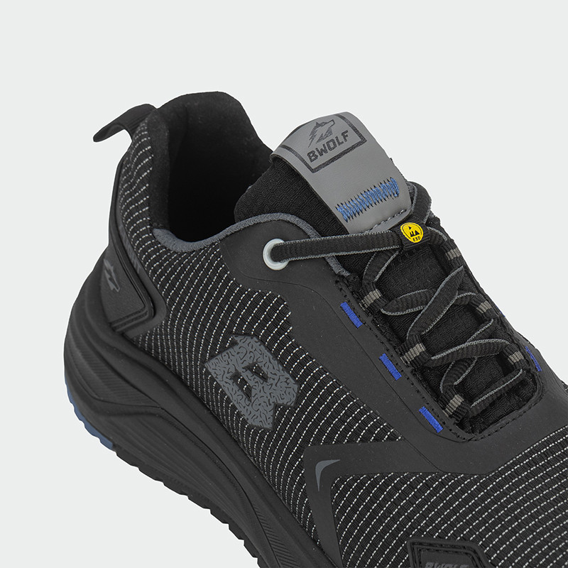 Ниски работни обувки BWOLF TURBO REF S3S – леки и удобни унисекс защитни обувки, подходящи за професионална употреба. Горната част е от дишащ текстил с TPU подсилвания при пръстите и петата и светлоотразителни елементи за по-добра видимост. Моделът разполага с композитно бомбе и неметална антипробивна вложка за надеждна защита. Олекотеното ходило от EVA и гума осигурява отлично сцепление, гъвкавост и абсорбация на енергията. Дишащата мрежеста подплата и полиуретановата стелка гарантират комфорт и ефективно отвеждане на влагата при продължително носене. Обувките предлагат ESD защита и отговарят на стандарт EN ISO 20345:2022+A1:2024, категория S3S ESD SR FO, размери 36–48.