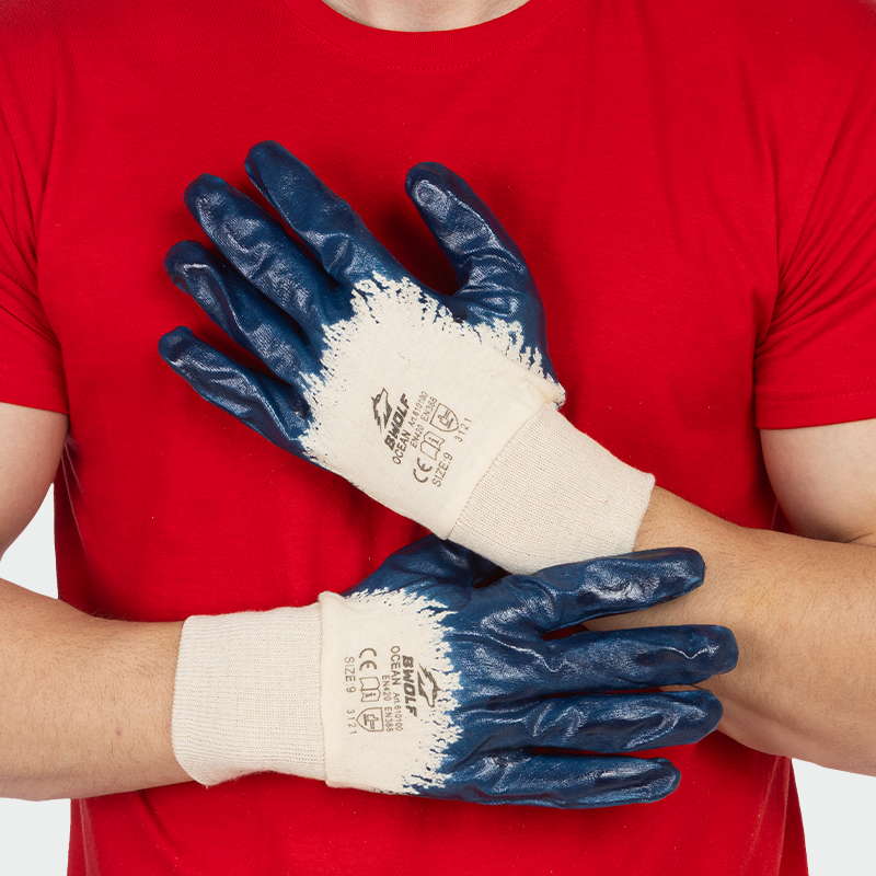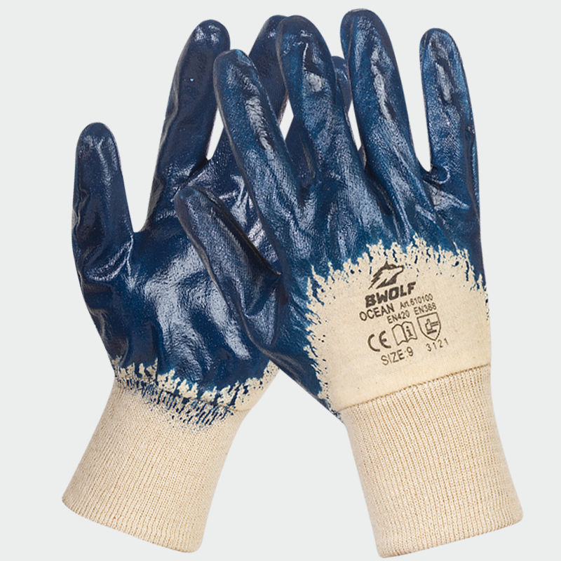 Работните ръкавици OCEAN са плетени от памук и покрити с нитрил за надеждна защита. Подходящи са за професионална и домашна употреба, предпазвайки ръцете от механични наранявания и замърсявания. С 5 пръста за прецизен захват и ластичен маншет за сигурно прилягане. Опаковката съдържа 12 чифта. Размер 9. Гарантират високо качество и безопасност според стандартите EN 388 и EN ISO 21420. Идеални за строителство, ремонт, градинарство и всяка дейност, изискваща здрав и надежден ръчен предпазител.