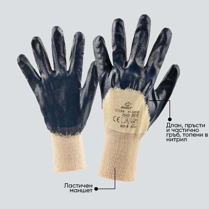 Нитрилни ръкавици BWOLF OCEAN - сини размер 9