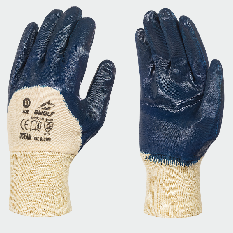 Работните ръкавици OCEAN са плетени от памук и покрити с нитрил за надеждна защита. Подходящи са за професионална и домашна употреба, предпазвайки ръцете от механични наранявания и замърсявания. С 5 пръста за прецизен захват и ластичен маншет за сигурно прилягане. Опаковката съдържа 12 чифта. Гарантират високо качество и безопасност според стандартите EN 388 и EN ISO 21420. Идеални за строителство, ремонт, градинарство и всяка дейност, изискваща здрав и надежден ръчен предпазител.