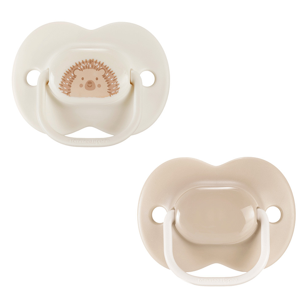 Комплект от 2 бр. ортодонтични залъгалки Tommee Tippee AnyTime 0-6 месеца в бежово и крем с декор Таралеж осигурява комфорт и спокойствие за новородени. Създадени с мек силиконов биберон, имитиращ майчино зърно, залъгалките се приемат лесно и подпомагат естественото развитие на устната кухина. Симетричната ортодонтична форма позволява обръщане и правилно поставяне във всяка позиция. Специално проектираният щит гарантира удобно прилягане към нежната бебешка кожа. Комплектът включва практична кутия за хигиенично съхранение и бърза микровълнова стерилизация. Залъгалките са BPA free, без фталати и са част от серията Tommee Tippee AnyTime, налична в различни възрастови категории.