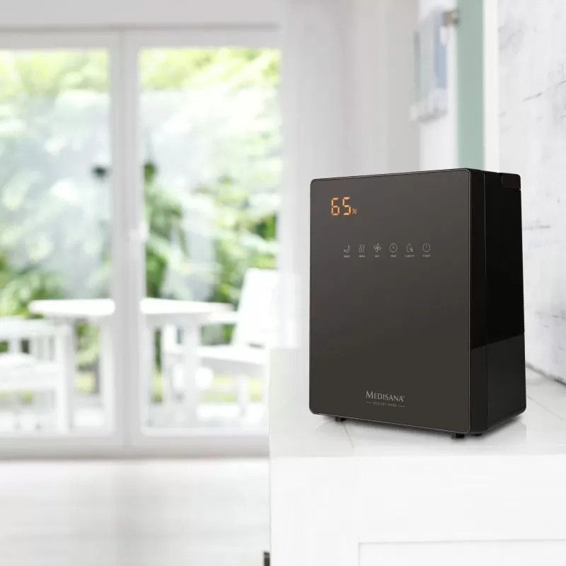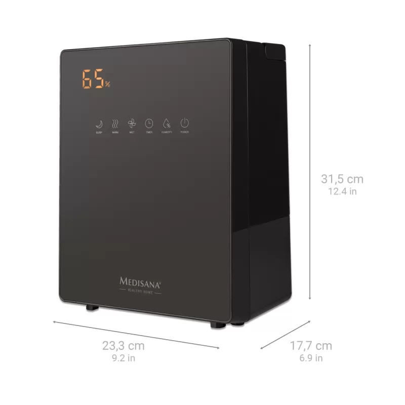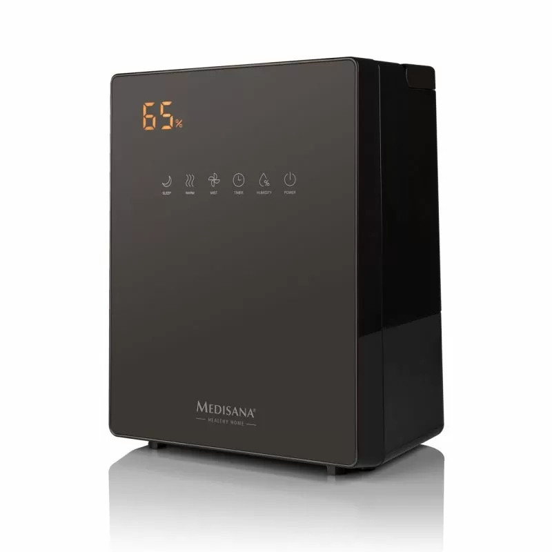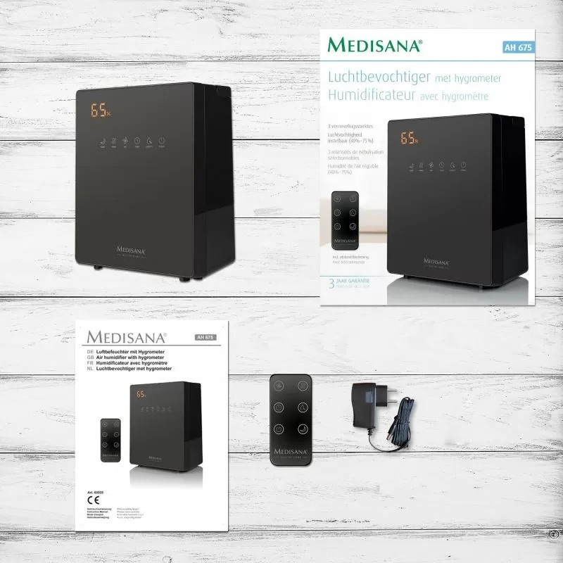 Овлажнителят за въздух Medisana AH 675 е мощно и надеждно решение за поддържане на оптимална влажност у дома. С регулируем диапазон от 40% до 75% и три нива на интензивност устройството осигурява прецизен контрол според нуждите на помещението. Моделът разполага с две 360° регулируеми дюзи, студена и топла мъгла (300 мл/ч и 400 мл/ч), както и удобен таймер от 1 до 9 часа. Благодарение на големия 5.2-литров резервоар овлажнителят работи до 23 часа без прекъсване. Нощният режим гарантира тиха работа, а автоматичното изключване при празен резервоар повишава безопасността. Включените воден филтър и дистанционно управление правят използването още по-удобно. Medisana AH 675 е ефективен избор за подобряване на качеството на въздуха в дома.