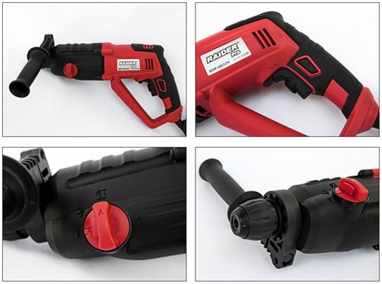 Перфоратор Raider 950 W ръчен инструмент предназначен за пробиване на отвори в различни материали с номинална мощност от 950 W. Инструментът може да пробива в бетон - 26мм, в дърво - 30 мм и стомана - 13 мм. Този модел ударен перфоратор с марка Raider е снабден със защитна система при заклинване или защипване на работния накрайник.