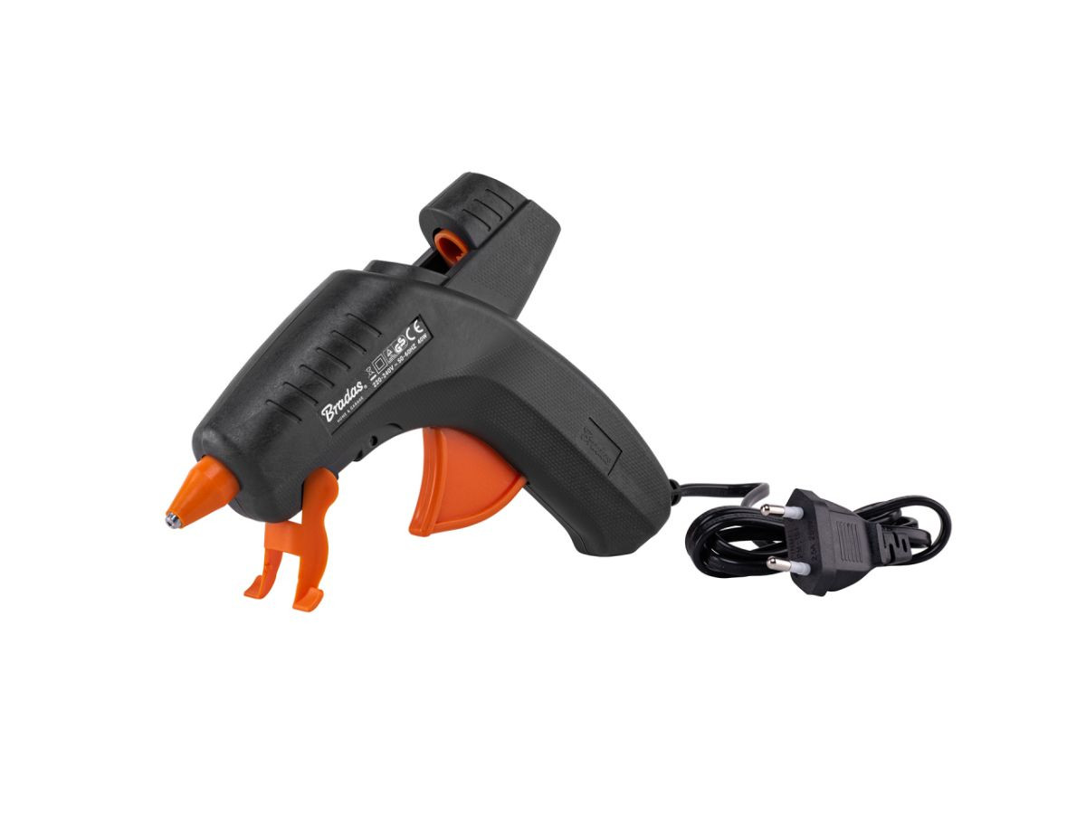 Професионален пистолет за топло лепене Bradas, подходящ за различни материали като пластмаса, дърво, керамика, текстил и хартия. Създаден за домашна и занаятчийска употреба, този уред осигурява бързо загряване и достига температура до 200°C, което гарантира здраво и устойчиво залепване.