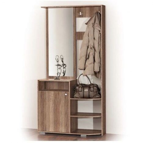 Портманто Мира притежава три ъглови етажерки и шкаф с врата, в който можете да поставите обувки и др. Портманто Мира е с изчистен дизайн, който включва правоъгълно огледало и две закачалки.
