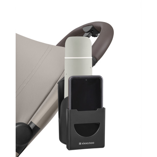 Универсална поставка за чаша и бутилка с вграден държач за телефон, подходяща за бебешка количка още от раждането. Практично решение за родители, които искат удобство и свободни ръце по време на разходка. Поставката е съвместима с повечето чаши и бутилки с диаметър до 85 мм, както и с мобилни телефони с ширина до 8 см и дебелина до 1,5 см. Регулируемата посока осигурява оптимален ъгъл на видимост и достъп. Изработена е от безопасни, екологично чисти материали, подходящи за ежедневна употреба. Противоплъзгащата каишка с гумена конструкция позволява стабилно закрепване към дръжки с различна форма. Лесна за монтаж и демонтаж, без нужда от инструменти.
