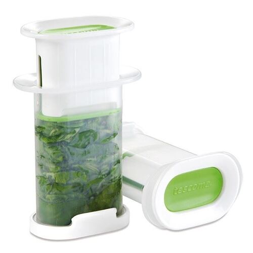 Преса за замразени билки Tescoma Handy е предназначен за приготвяне, съхранение и лесно използване на замразени билки. Идеален е за босилек, риган, лук, магданоз, кориандър, мащерка, копър, градински чай и други. Изработени са от устойчива пластмаса. Подходящ за съдомиялна машина. Размерите й са 7 х 4 см - височина 12 см.