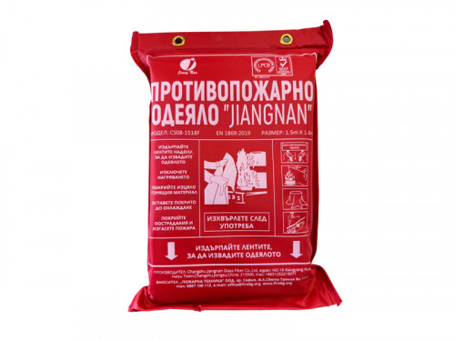 Противопожарното одеяло JIANGNAN (модел CS08-1518F) с размери 1.5 х 1.8 м е сертифицирано по стандарт EN1869:2019 и вписано в регистъра на ГД ПБЗН съгласно Наредба № 8121з-906 от 30.07.2015 г. (изм. и доп. ДВ. бр. 12 от 03.02.2023 г.).