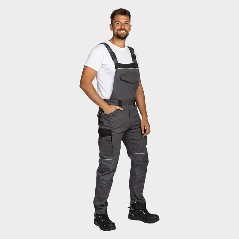 Работен гащеризон DAYTONA на B-WOLF – висококачествено работно облекло, създадено за комфорт, издръжливост и свобода на движение. Изработен от 97% памук и 3% еластан с плътност 240 г/м². Подсилените зони на коленете и крачолите от Oxford 600D осигуряват по-голяма устойчивост на износване. Моделът разполага с множество функционални джобове, джобове за наколенки и частично еластични презрамки. Светлоотразителните елементи RE-FLECT подобряват видимостта при работа. Подходящ за строителство, монтажни и сервизни дейности.