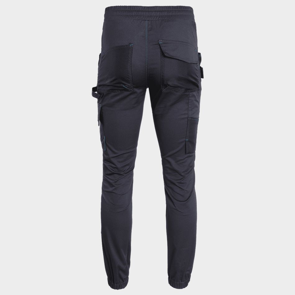 Работен панталон с вталена, спортна кройка за максимален комфорт и свобода на движение. Ластична талия с връзки и цип осигурява удобство, а ластичните глезени гарантират стабилно прилягане. Моделът разполага с два обемни предни джоба с допълнителни отделения, джоб с капак на лявото бедро, инструментален джоб на дясното бедро и два задни джоба, единият с капак. Светлоотразителният елемент на предния джоб повишава безопасността. Изработен от висококачествена материя: 32% памук, 65% полиестер, 3% спандекс (240 г/м²). Стандарт: EN ISO 13688.
