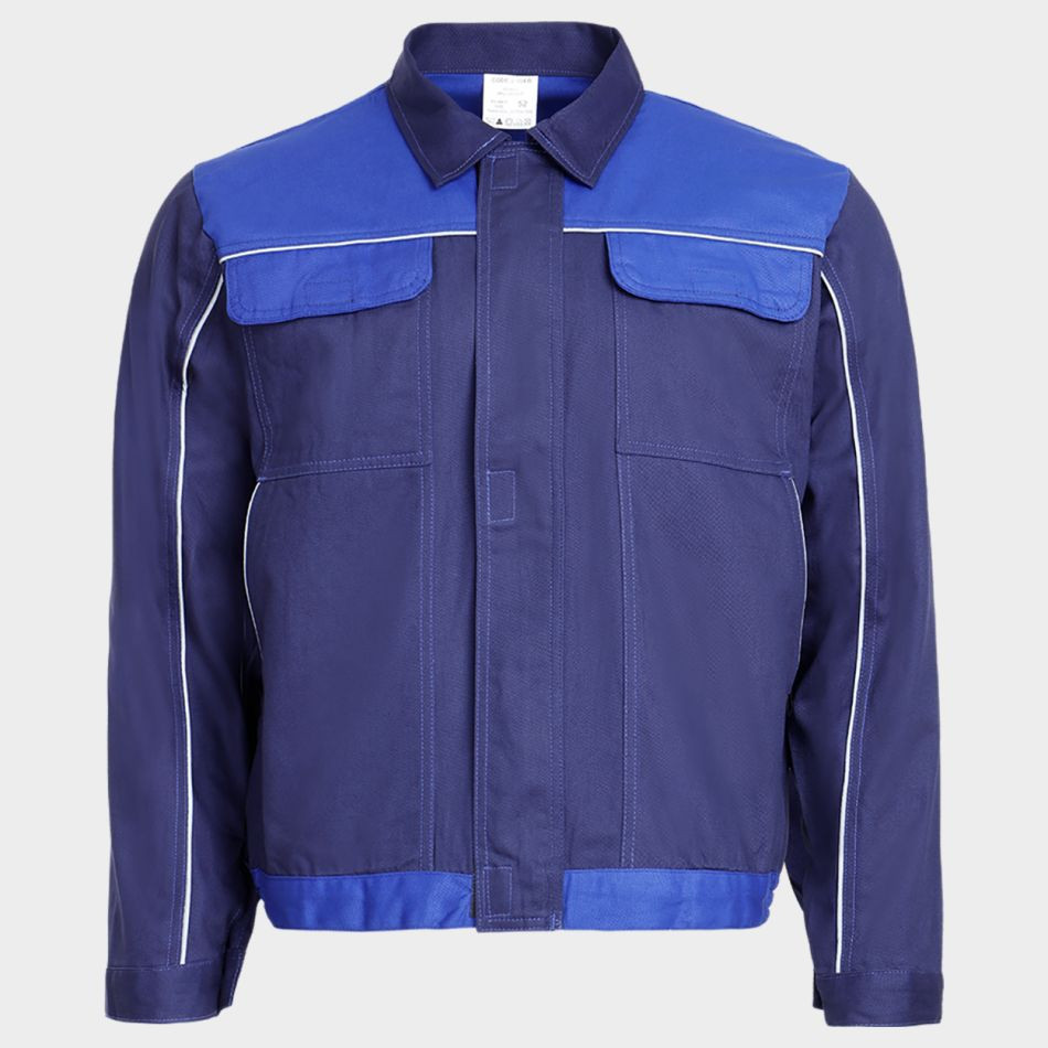 Работно яке Asimo Stenso син има обемни джобове и светлоотразителен кант. Закопчаването е посредством цип. Изработено е от 100% памук, 240 гр./м². Много леко, меко и удобно за топлите дни през годината.