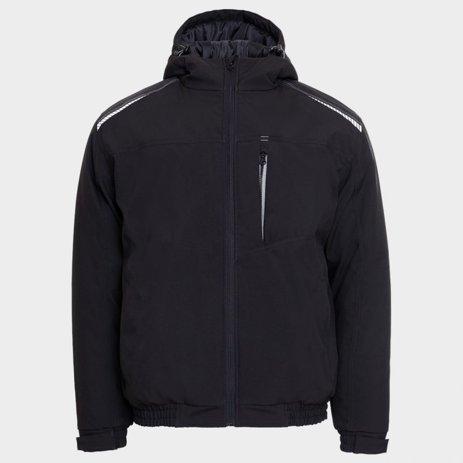 Работно яке REVOLT SOFTSHELL WINTER BLACK – ватирано софтшел яке с модерен спортен дизайн, идеално за студените месеци. Изработено от водо- и ветроустойчива материя (100% полиестер, 150D mechanical stretch + TPU, 240 г/м²), осигурява топлина и комфорт. Разполага с два предни джоба и нагръден джоб с цип, два вътрешни джоба, еластични маншети с велкро регулиране и пристягане в долната част. Ватираната качулка с регулиране и светлоотразителните елементи гарантират безопасност и удобство. Отговаря на стандарт EN ISO 13688 – перфектен избор за професионална и ежедневна употреба.