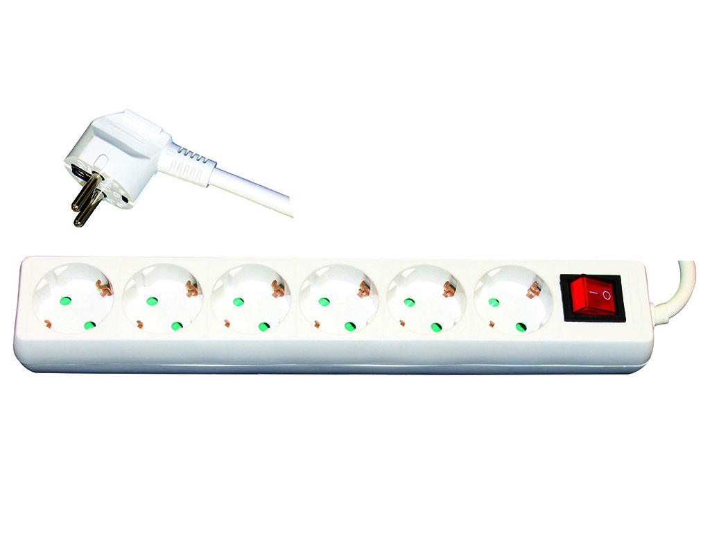 Разклонител 6 гнезда с ключ и кабел Konekto