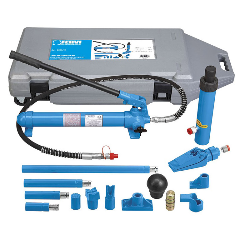 Разпъвачка Fervi за автомобили комплект 10 т 0054/10 е хидравличен комплект за ремонт на автомобили. Предназначена е за изправяне на отвори, врати, прозорци, греди и други. Тя е с капацитет 10 т, дължина на буталото 330 мм и ход на буталото 130 мм