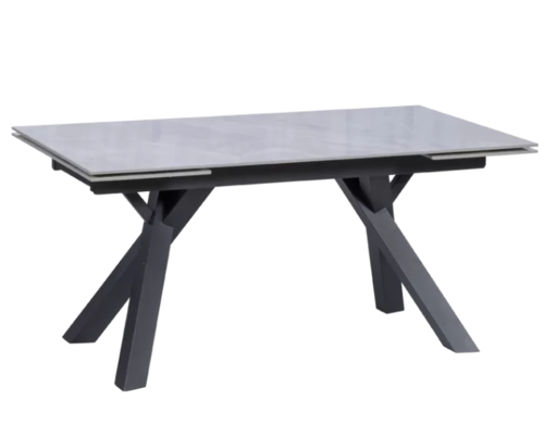 Разтегателна трапезна маса OPOLE Carmen е модел с нестандартни крака, направени от праховобоядисан метал, в елегантен черен цвят. Тя е с голям керамичен плот(160 x 240 см), с шарки, имитиращи мрамор и функция за разтягане.