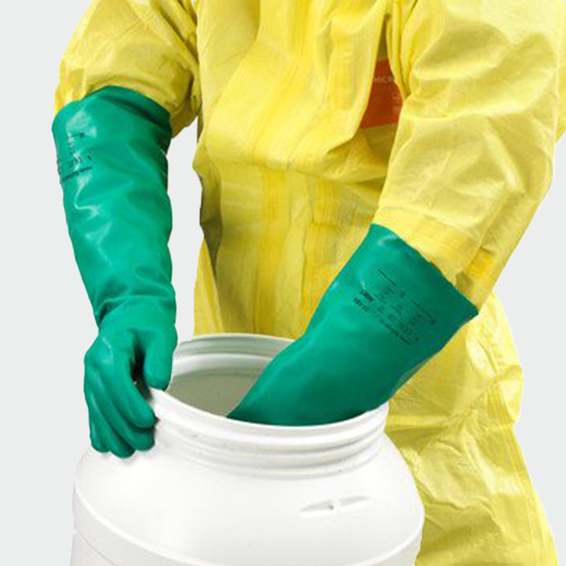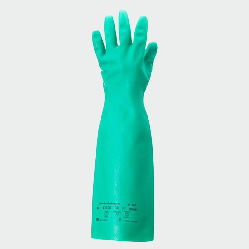 Ръкавиците AlphaTec 37-185 осигуряват надеждна химическа защита по стандарт EN 374 тип А. Изработени от високоефективен нитрил, те са устойчиви на различни химикали и осигуряват отличен комфорт, сцепление и прилягане. С дължина до лакътя, ръкавиците намаляват риска от замърсяване с власинки и отговарят на изискванията за контакт с храни. Подходящи са за професионална употреба в лаборатории, индустрията и хранителния сектор.