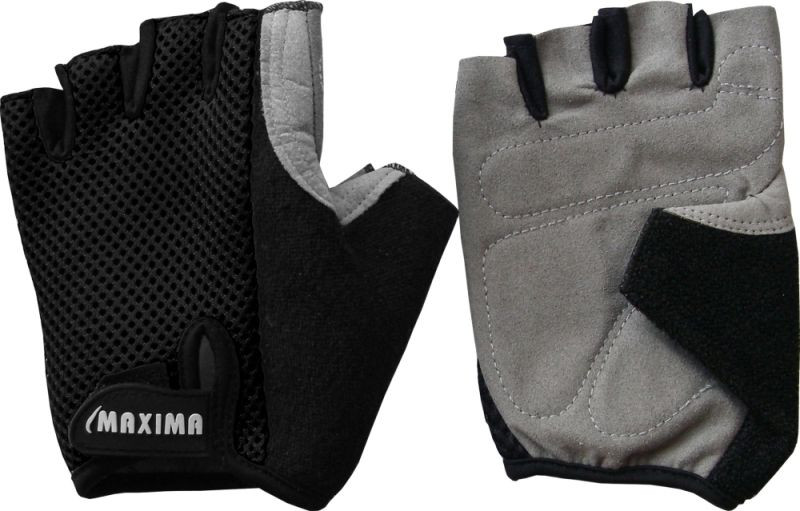 Ръкавици за колоездене MAXIMA без пръсти, изработени от велур и текстил, осигуряват отличен захват на кормилото и максимално абсорбиране на потта. Външната мрежа гарантира проветрение, а ергономичният дизайн с извивки и шевове предлага комфорт и лесно обличане и събличане. Идеални за дълги велоразходки и интензивни тренировки. Включена е чанта за удобно съхранение и пренасяне. Лек и практичен аксесоар за всеки велосипедист. Тегло: 50 г/чифт. Размери: XL – ширина 10 см, дължина 15 см; 2XL – ширина 11 см, дължина 16 см.