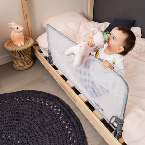 Предпазна преграда за детско легло SAFETY 1st, дължина 150 см, осигурява безопасен сън без риск от падане. Лесна за монтаж без инструменти, с автоматично заключване в изправено положение и лесен достъп до леглото при сгъване. Височина 42 см, широчина 150 см, лека и преносима – идеална за дом или гости. Подходяща за деца при преход от креватче към легло. Монтира се между матрак и отделна подматрачна рамка (не е съвместима с вградена рамка). Практична, безопасна и удобна за родителите, съчетавайки комфорт и надеждност.