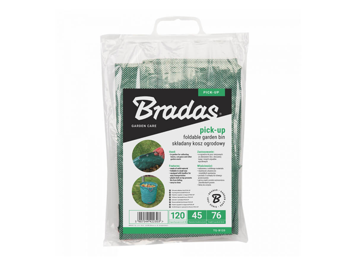 Градинският кош PICK-UP разполага с удобни дръжки за пренасяне и сгъване, които са компактни за съхранение. С вместимост от 120 литра, диаметър 46 см и височина 75 см в разгънато състояние, той е подходящ както за малки, така и за по-големи градински задачи. Лек и удобен, този сгъваем кош ще улесни събирането на отпадъците и ще помогне да поддържате двора си чист и подреден.