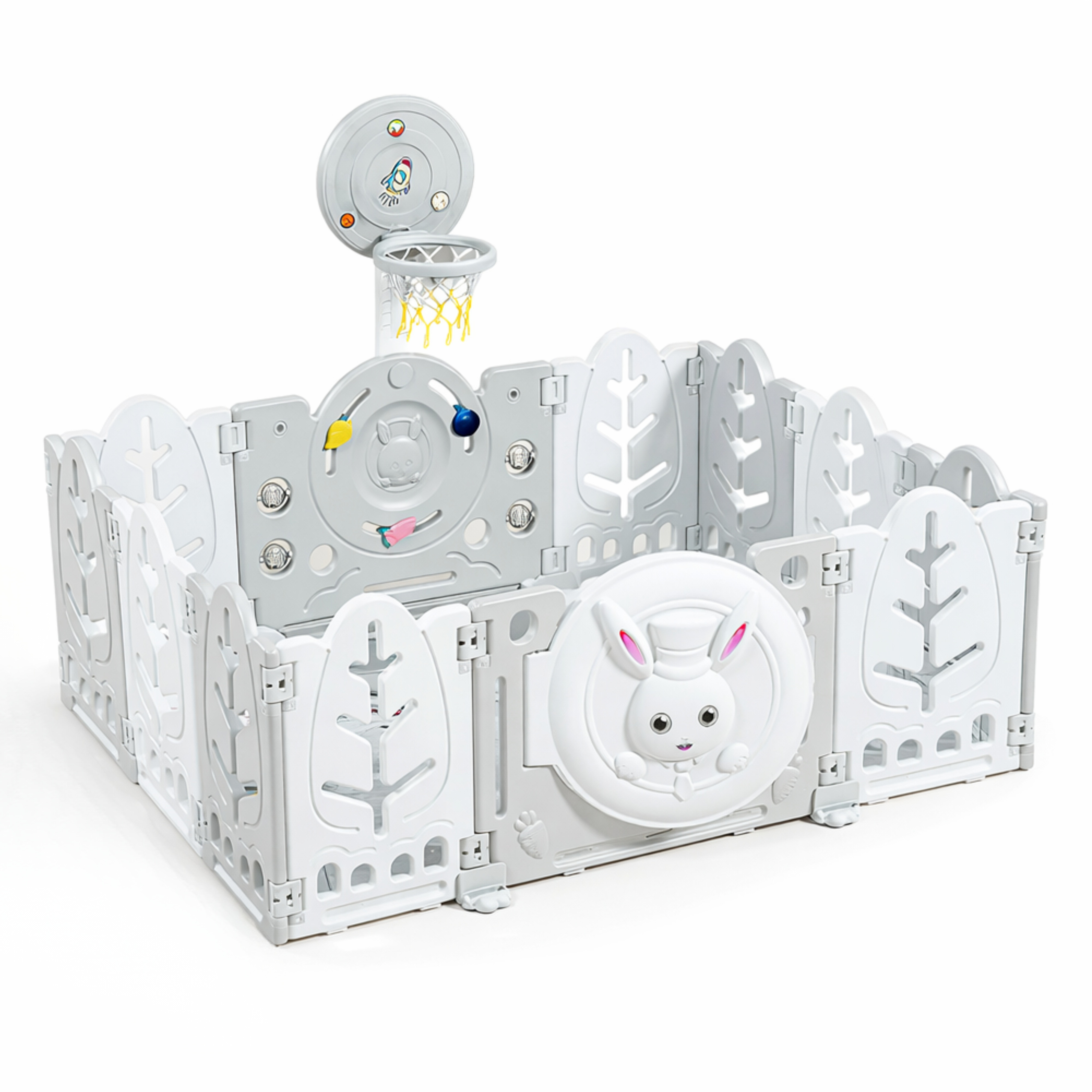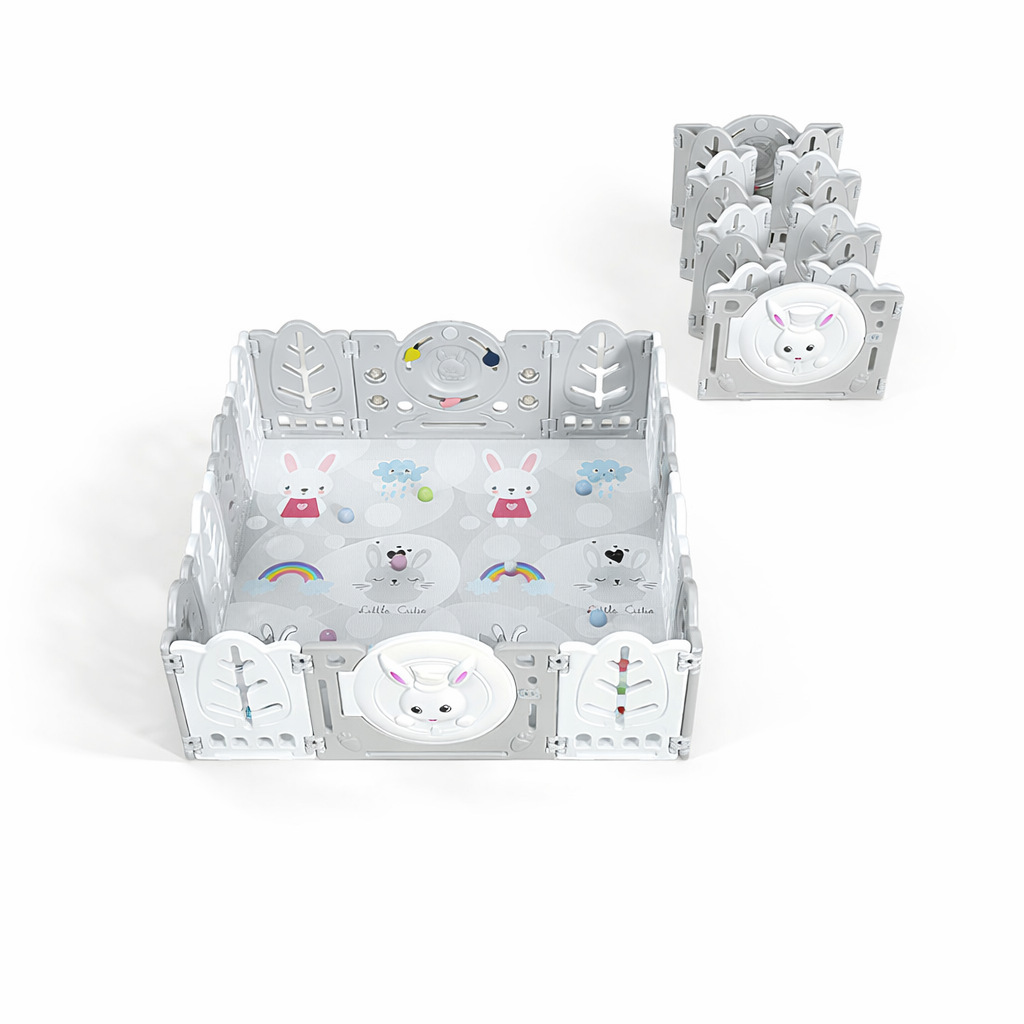 Сгъваема детска ограда 160/115 The White Rabbit от Moni Garden е функционално решение за безопасна и забавна зона за игра у дома. Моделът комбинира сигурност и игрови елементи, включително баскетболен кош с топка и 50 цветни топки. Комплектът включва 10 + 2 части и меко XPE килимче с дебелина 1 см за комфорт. Двата големи панела, единият с активности, стимулират развитието и играта. Модулният дизайн позволява различни конфигурации според пространството, а сгъваемата конструкция не изисква разглобяване и улеснява съхранението. Вратичката е с двойна катарама и заключващ бутон за безопасност, а вендузите осигуряват стабилност. Продуктът отговаря на европейските стандарти EN 71-1:2014+A1:2018, EN 71-2:2020 и EN 71-3:2019+A1:2021.