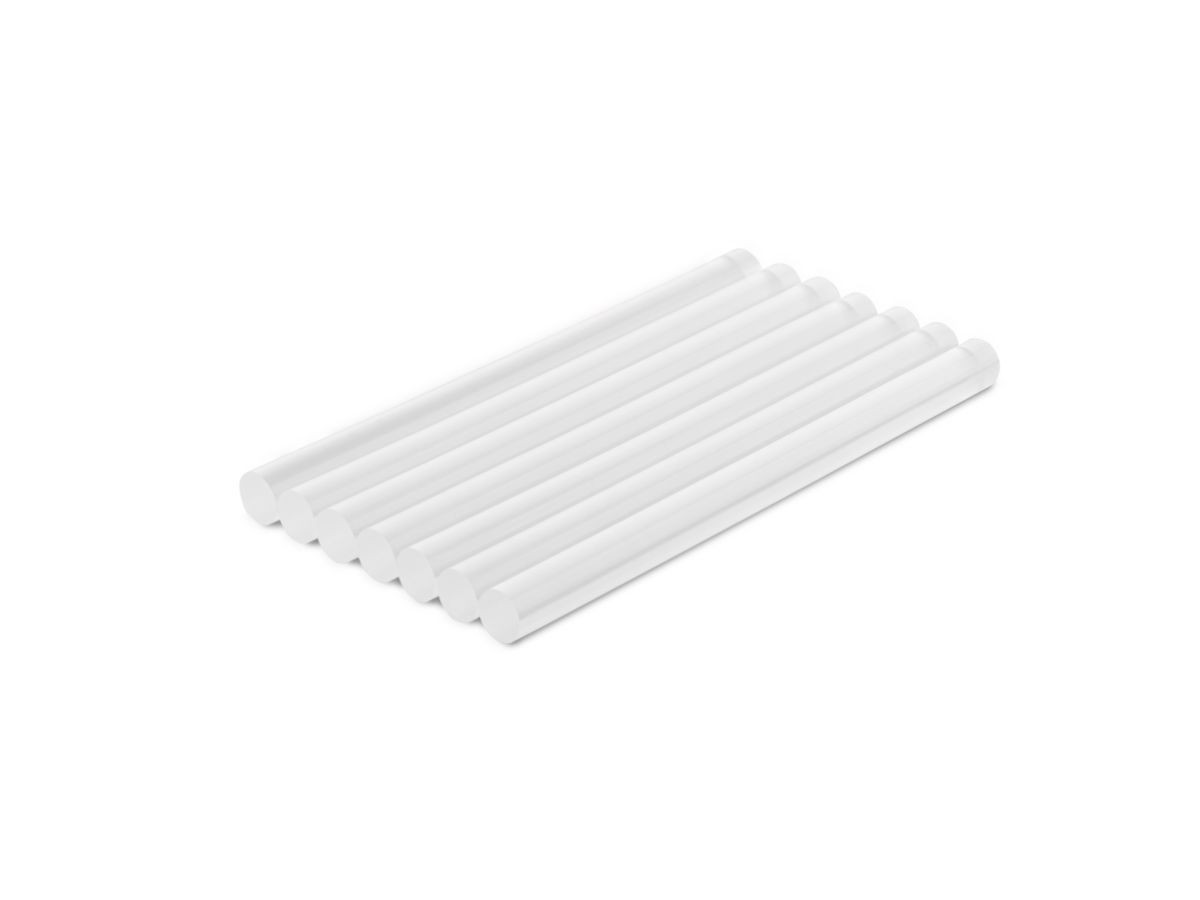 Тези лепилни пръчки осигуряват силна и дълготрайна връзка върху различни повърхности като дърво, пластмаса, текстил, картон и метал. Прозрачната структура гарантира дискретен и естетичен завършек, без видими следи от лепило.