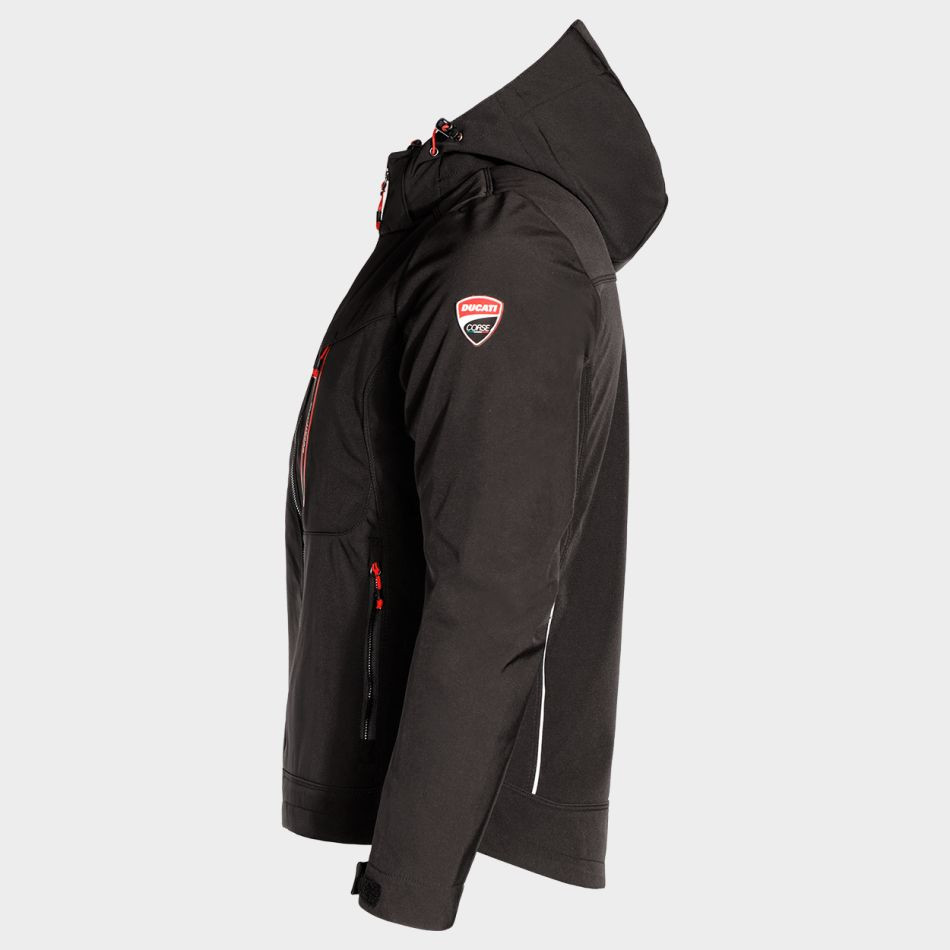 Софтшел яке DIADORA JACKET SOFTSHELL DUCATI от Diadora – висококачествено работно яке с модерен дизайн и отлична защита от вятър. Моделът разполага с регулируема и сваляща се качулка, два странични джоба, нагръден джоб с цип и вътрешен джоб с велкро. Удълженият гръб, регулируемата талия и ергономичните ръкави с регулируеми маншети осигуряват комфорт и перфектно прилягане. Изработено от софтшел (94% полиестер, 6% еластан, 310 г/м²) с PU мембрана за допълнителна устойчивост и защита.