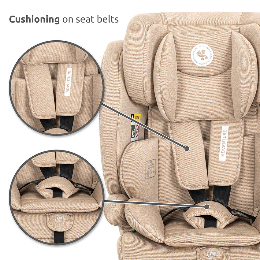 Стол за кола ADVENTURE i-Size – безопасен и удобен за деца от 15 месеца до 12 години (76-150 см). Инсталация FF по посоката на движението с автомобилен колан. Регулируеми предпазни колани спрямо растежа и мека вложка за малко дете. Осигурява комфорт с EPS и мемори пяна, омекотители на коланите и регулируема облегалка за главата. Одобрен по ECE R129/03 за максимална безопасност. Лесен монтаж чрез предпазен колан на автомобила. Идеален избор за сигурно и удобно пътуване.