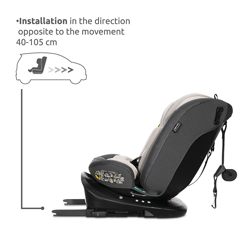 Стол за кола IMOLA i-Size ISOFIX 360 – безопасен и удобен от раждането до 12 г. (40-150 см). Осигурява ротация на 360° за лесен достъп и вложка за по-малки деца. Мека подложка за глава, EPS и мемори пяна за допълнителна сигурност и комфорт. Одобрен по ECE R129/03. Регулируеми колани спрямо растежа с противоплъзгащи омекотители. Инсталация RWF (40-105 см) обратно на движението и FF (76-150 см) по посоката на движението. Лесен монтаж с ISOFIX и горен колан. Облегалката е регулируема: 1 позиция RWF, 3 позиции FF.