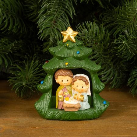 Добавете духовна и празнична атмосфера с фигурката на Светото семейство. Малката, но детайлна декорация е изработена от качествен полирезин и представлява Йосиф, Мария и младенеца Исус в изящна композиция. Идеална е за коледна украса у дома, на маса, рафт или като подарък за близки, които ценят традицията и религиозния смисъл на празника. Компактните размери позволяват лесно позициониране, а изисканите детайли създават уют и уважение към коледния дух.
