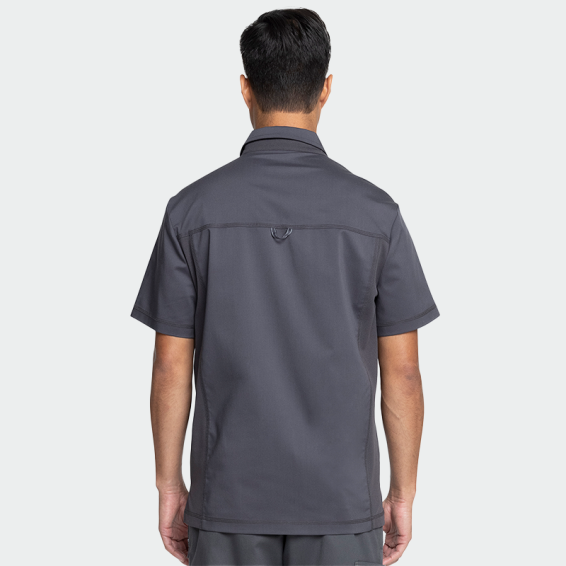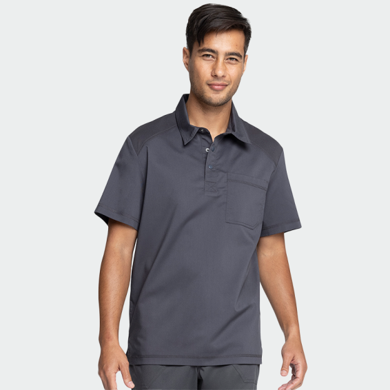 Мъжката медицинска тениска REVOLUTION WWE615 Cherokee съчетава стил, комфорт и функционалност. Изработена е от висококачествена материя – 78% полиестер, 20% вискоза и 2% еластан с плътност 170 g/m², осигуряваща отлична дишаемост и свобода на движение. Дизайнът включва поло яка , тик-так копчета , удобен джоб на гърдите и декоративна халка на гърба . Подходяща е за лекари, медицински специалисти и служители в козметични центрове, търсещи съчетание от професионална визия и комфорт. Изберете Cherokee REVOLUTION WWE615 за модерен и практичен работещ стил.