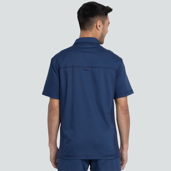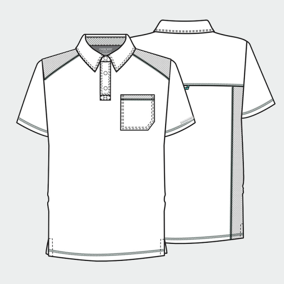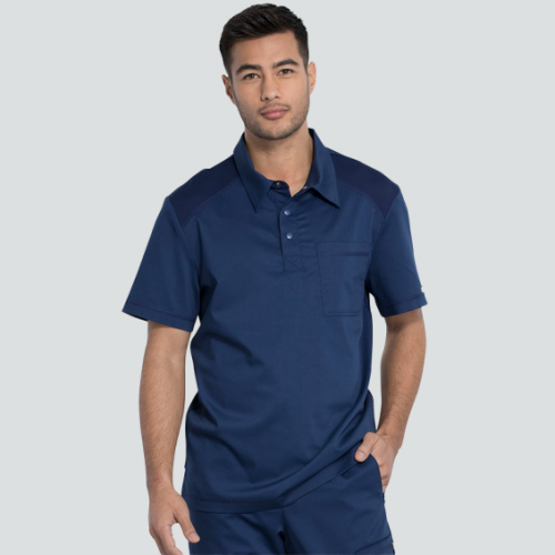 Мъжката медицинска поло тениска REVOLUTION WWE615 Cherokee съчетава стил, комфорт и функционалност. Изработена е от висококачествена материя – 78% полиестер, 20% вискоза и 2% еластан с плътност 170 г/м², осигуряваща отлична дишаемост и свобода на движение. Дизайнът включва поло яка, тик-так копчета, удобен джоб на гърдите и декоративна халка на гърба. Подходяща е за лекари, медицински специалисти и служители в козметични центрове, търсещи съчетание от професионална визия и комфорт. Изберете Cherokee REVOLUTION WWE615 за модерен и практичен работен стил.