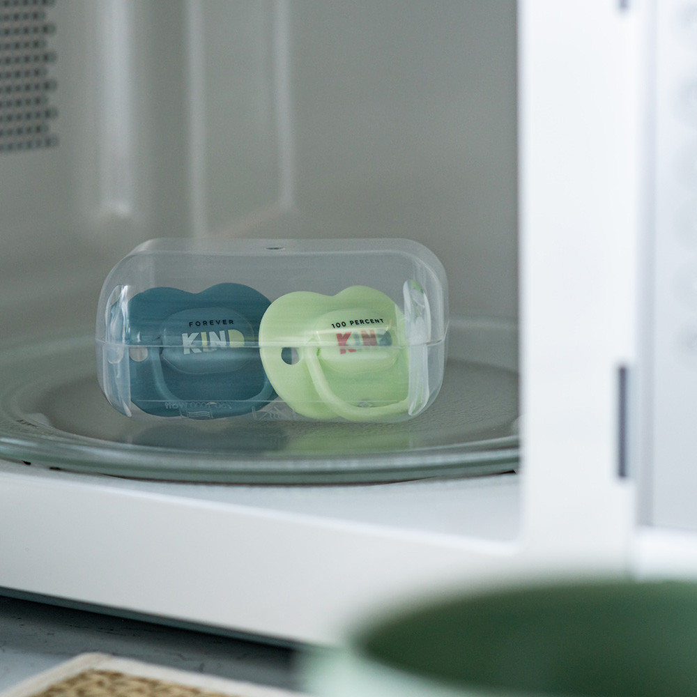 Комплект от 2 бр. ортодонтични залъгалки Tommee Tippee AnyTime 6-18 месеца е създаден за комфорт и сигурност на растящото бебе. Мекият силиконов биберон, имитиращ майчино зърно, се приема лесно и подпомага естественото развитие на устната кухина. Симетричната ортодонтична форма позволява биберонът да се обръща, осигурявайки правилно поставяне във всяка позиция. Специално проектираният щит приляга удобно към лицето и не дразни кожата. Комплектът включва 2 залъгалки и практична кутия за хигиенично съхранение и бърза микровълнова стерилизация. Залъгалките са BPA free, без фталати и са част от серията Tommee Tippee AnyTime, налична в различни възрастови категории.