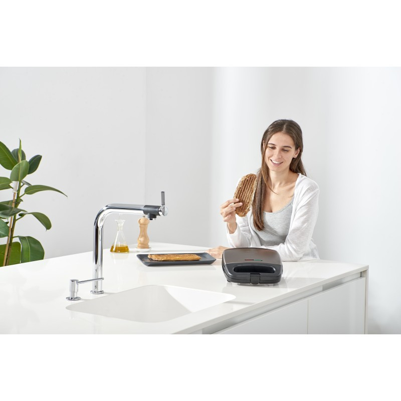 Тостер 750 W Black&Decker BXSA750E можете да печете всякакви видове хляб и да направеите любите сандвичи на цялото семейство. Има специално покритие на плочите, което предотвратява залепването на остатъците от храна по повърхността. Компактен дизайн с 23 х 23 х 8,5 см и възможност за вертикално съхранение. Функционалнa светлина, която показва кога е достигната температурата на тоста.