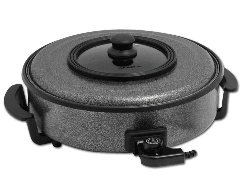 Уред за пица FIRST FA-5109-2 1500 W Ф 42 см e мултифункционална електрическа тава, подходяща за приготвяне на пица, пържоли, сандвичи, палачинки, бъркани яйца, морски дарове и риба. Уредът е с мощност 1500 W, с автоматично регулиране на топлината чрез термостат и контрол на температурата с 5 нива на мощност. Тавата е с лесно за почистване адхезивно покритие външен диаметър 42 см и вътрешен диаметър 40 см. Уред за пица FIRST FA-5109-2 1500 W е лесен за почистване, не изисква много място, спестява време и енергия.