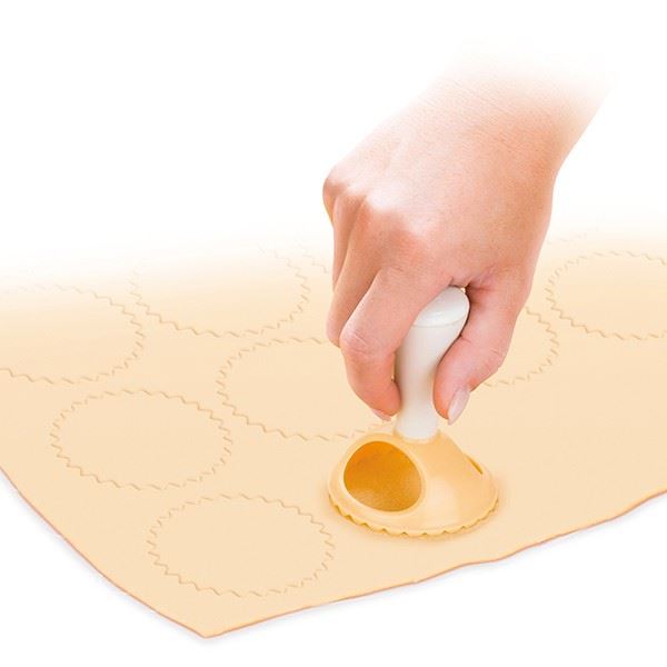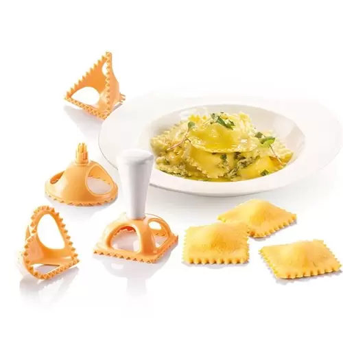 Уред за рязане на равиоли Tescoma Delicia е предназначен за приготвяне на оригинална италианска паста - равиоли с форма на кръгове, квадрати или триъгълници. Има универсална дръжка, която лесно се отделя. Подходящ е за съдомиялна машина. Винаги мийте режещите части разглобени.