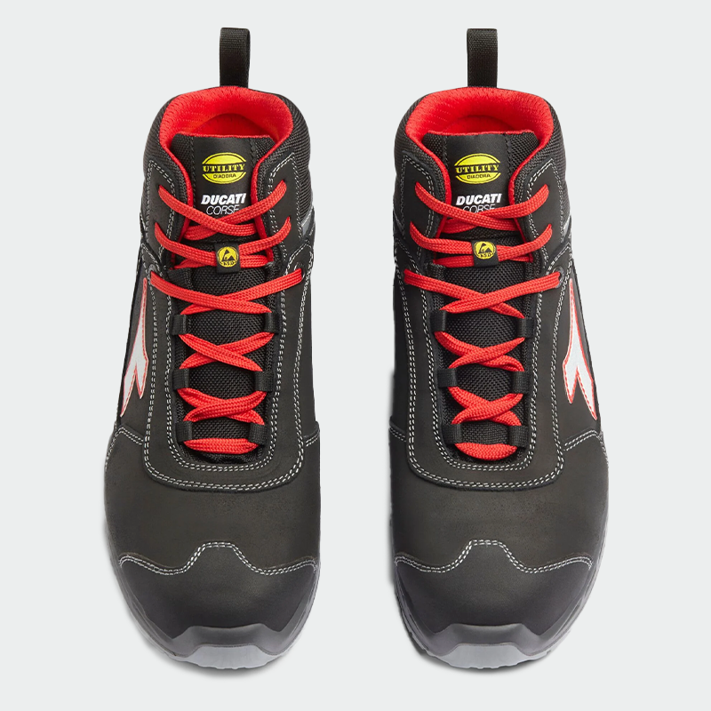 Високи работни обувки Diadora SHARK ENGINE MID S3S, изработени от устойчив велур. С алуминиево бомбе (200J) и кевларена антипробивна вложка K-Sole. Дишаща мрежеста подплата и ергономична, антистатична стелка от PU пяна с активен въглен. Полиуретаново ходило със STABLE IMPACT SYSTEM осигурява комфорт и стабилност. Сертифицирани по стандарт EN ISO 20345:2022. ESD защита. Подходящи за индустриална и професионална употреба с високо ниво на безопасност.