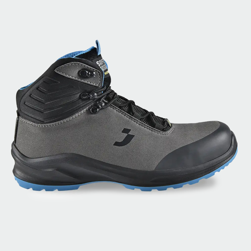 Високи работни обувки Safety Jogger MODULO MID S3S в сив цвят – идеални за професионална защита и комфорт. Изработени от издръжлив микрофибър, с нано карбоново бомбе и кевларена вложка против пробождане. Ходилото е от двуслоен полиуретан BASF за отлична устойчивост и сцепление. Анатомичната стелка е сменяема, ергономична и микроперфорирана. Обувките са ESD, без метални елементи, с дишаща мрежеста подплата. Сертифицирани по стандарт EN ISO 20345:2022. Перфектният избор за безопасност и удобство при работа.